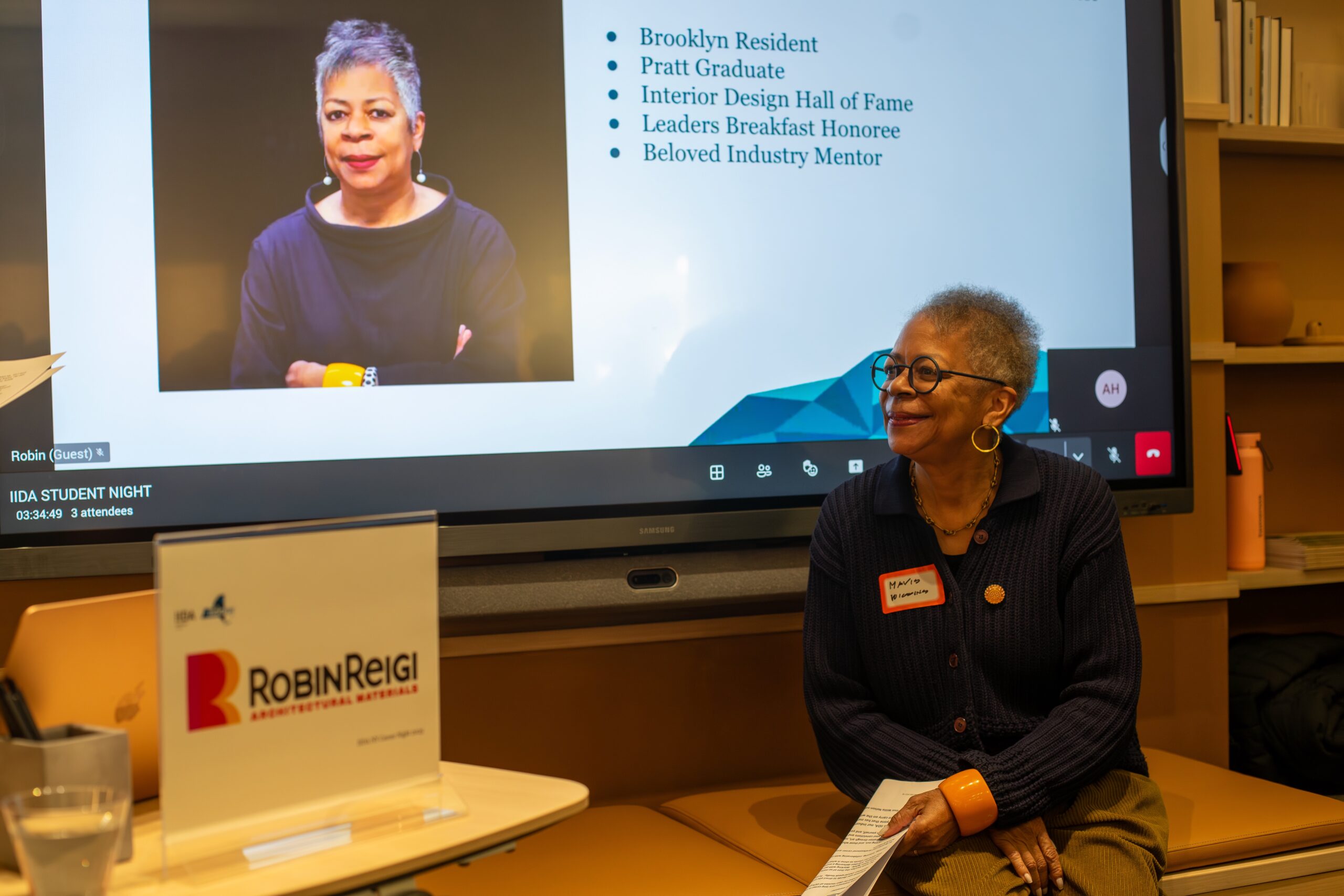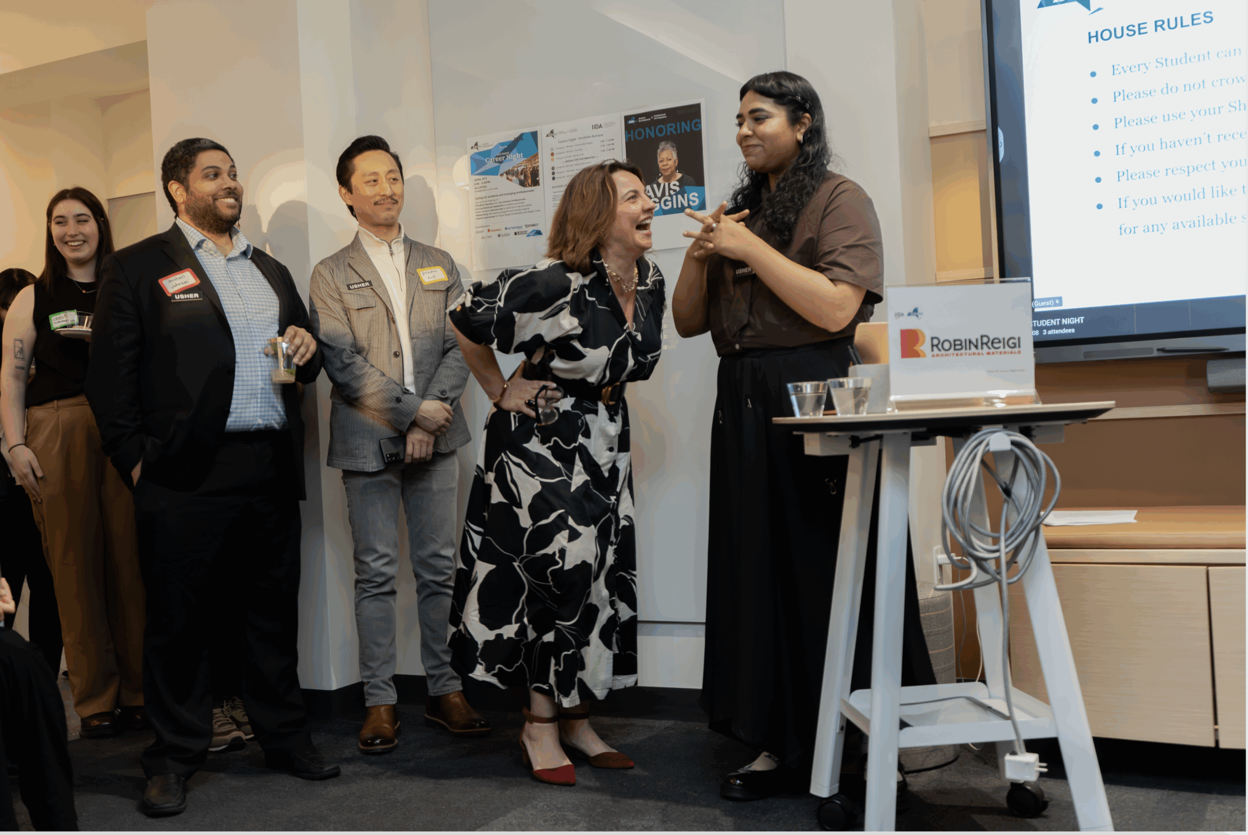 The night opened with a heartfelt keynote by industry legend Mavis Wiggins, Managing Executive / Studio Creative Director at TPG Architecture. Mavis shared personal insights from her career. Moreover, she highlighted the importance of seeking mentorship, maintaining integrity, and staying open to inspiration. Mavis also fondly recalled discovering Robin Reigi materials while designing the HBO headquarters. A reminder that great design is built on strong, lasting impressions.