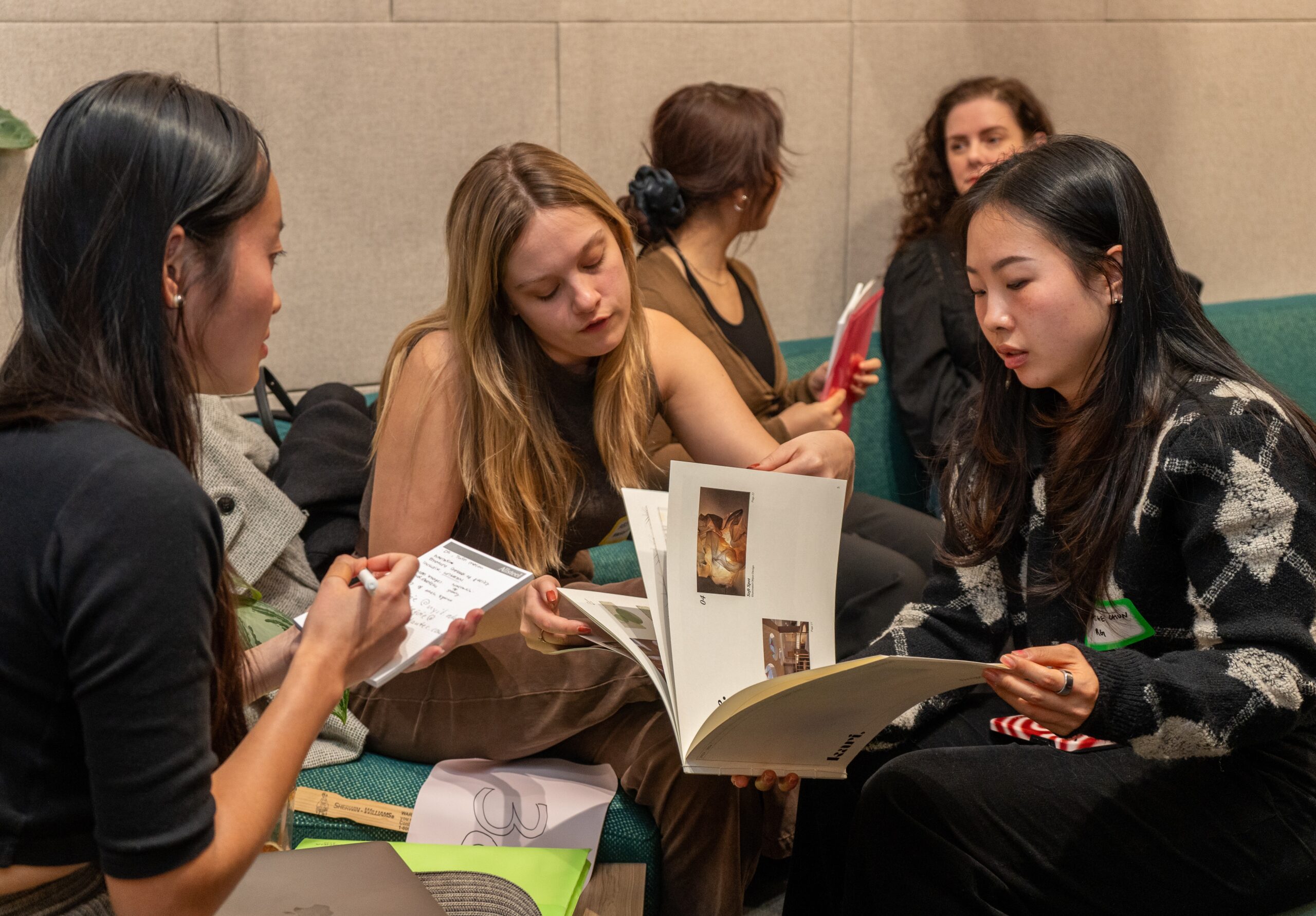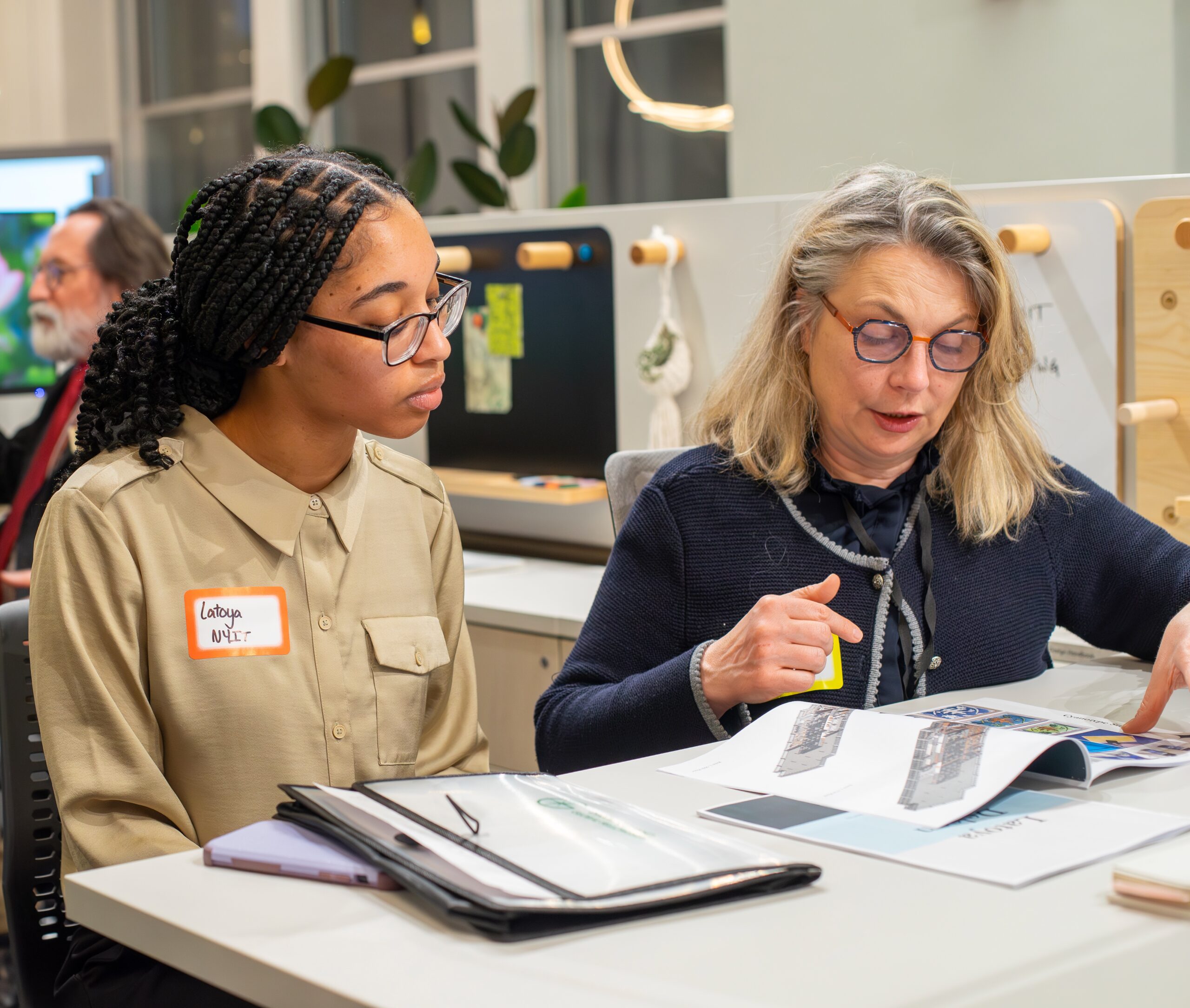This year also featured a standout workshop, “Networking and Personal Branding for Introverts,” by Susan Fernandez of UpSpring. The workshop met students where they were, offering tools to confidently navigate professional relationships. Attendees floated between portfolio reviews and the workshop, building skills that extend beyond the design studio.