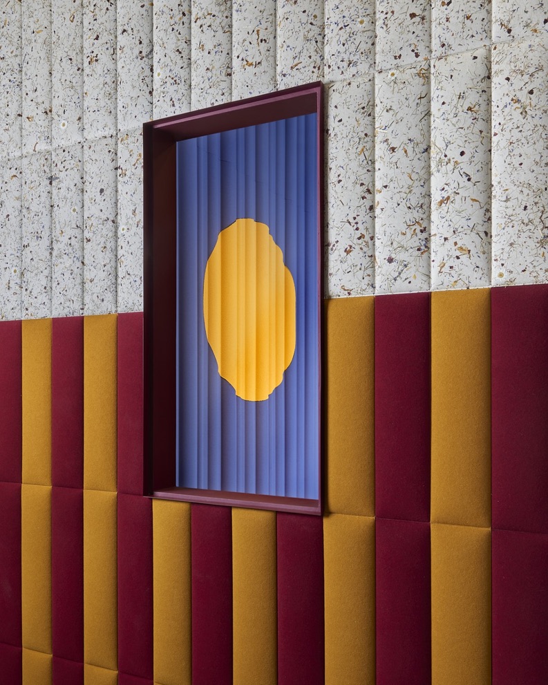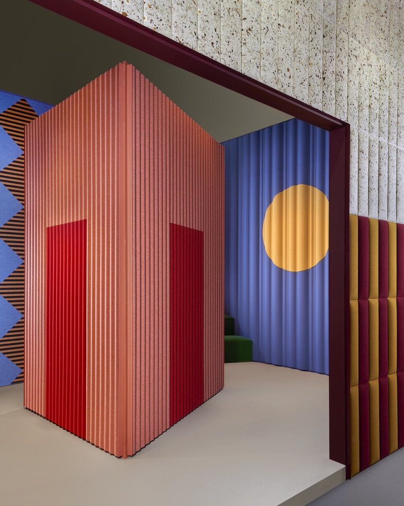 One of the most exciting moments came from Slalom’s collaboration with Swedish designer Tekla Severin. Her love of bold colors and shapes helped turn the acoustic panels into true design features. By blending her creative vision with Slalom’s technical know-how, the result was eye-catching and smart. In short, this partnership proved that panels can be functional and fun.