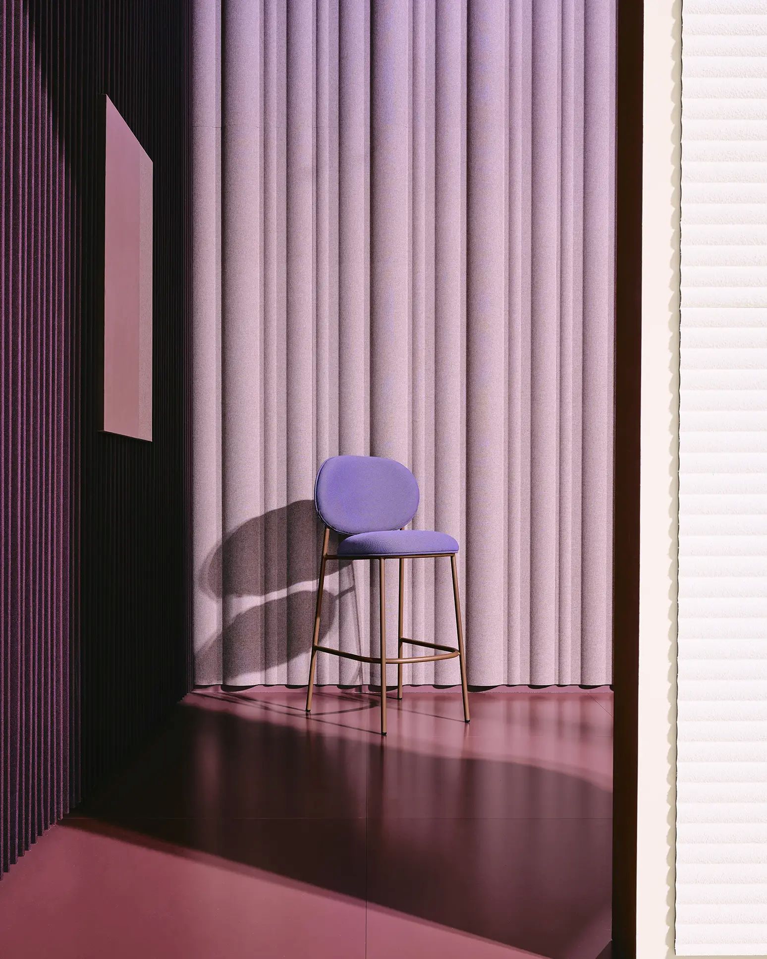 Millerighe comes in a wide array of colors in multiple fabrics including Treviria CS. (100% Trevira FR CS, polyester Fr), PETfabric (100% recycled polyester + GRS), PETcolor (100% PET, recycled polyester + GRS), ECOfelt (90% natural wool and 10% polyester), PETfelt (96% PET – made from recycled plastic bottles), Tweed (75% wool, 25% polyamide), and Boucle (100% PL recycled SEAQUAL).