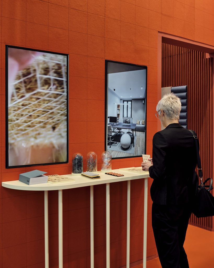 FELTshape allows designers to create endless custom shapes and color combinations. POISfelt layers two colors using micro holes to create a rich texture. PRINTEDfelt offers a wide array of customizable possibilities. Arlecchino, designed by Swedish colorist Tekla Severin, introduces printed geometry with contrasting colors that create rhythmic, dynamic surfaces. CRAFTfelt uses precise laser processing and stitching to evoke a handcrafted finish with subtle texture.