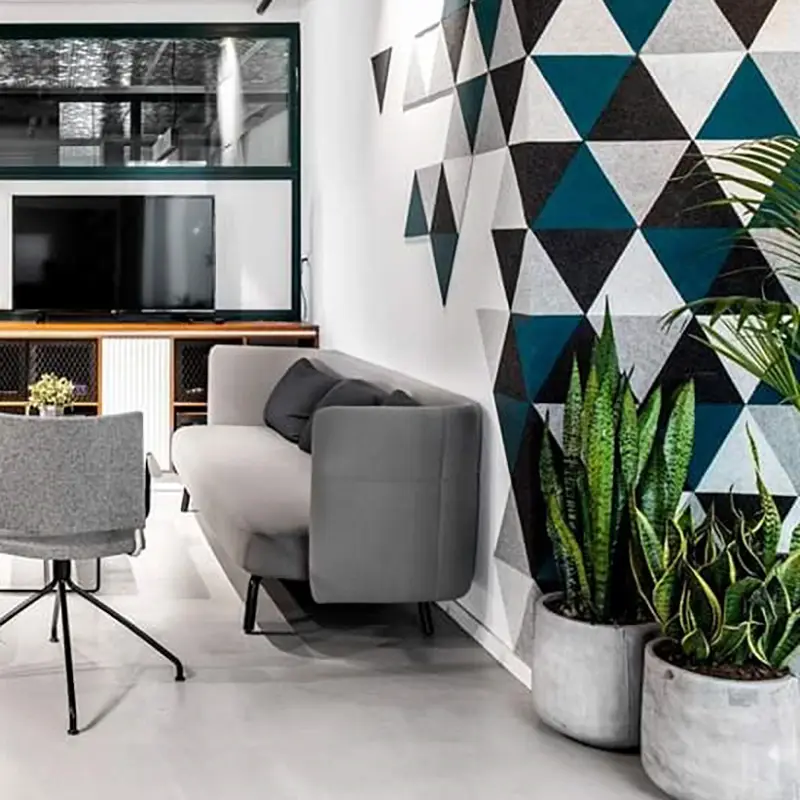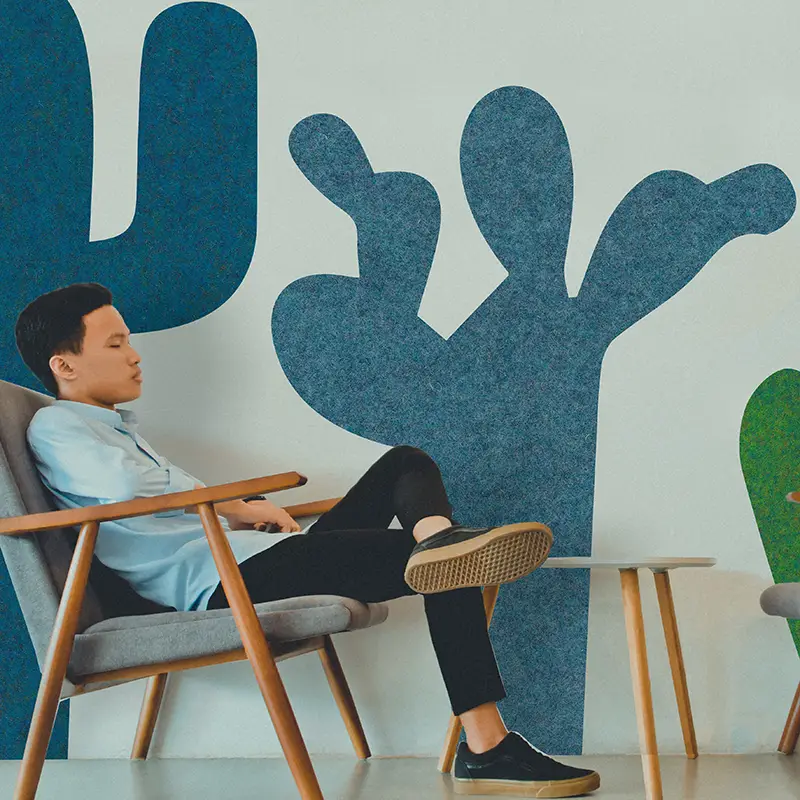 Slalom’s FELTdesign elevates PETfelt and ECOfelt through advanced printing, laser processing, perforation, collaging, and stitched detailing. These treatments combine acoustic comfort with bold visual impact, turning standard felt into a surface that feels custom and crafted.