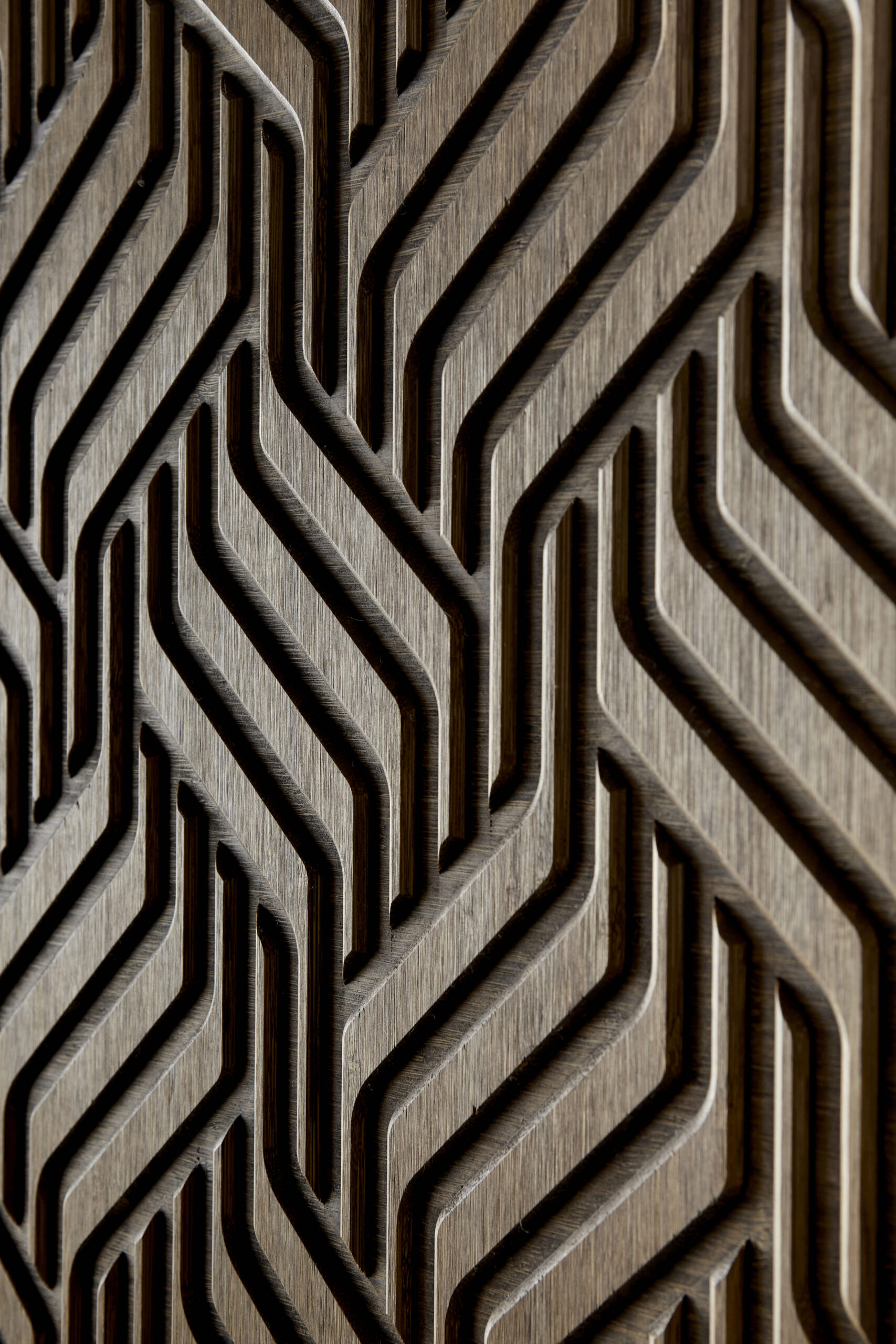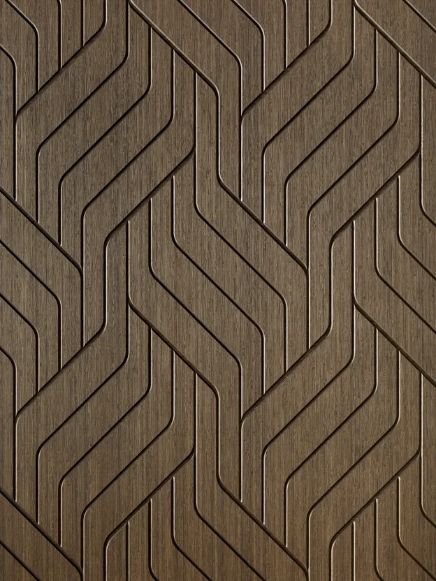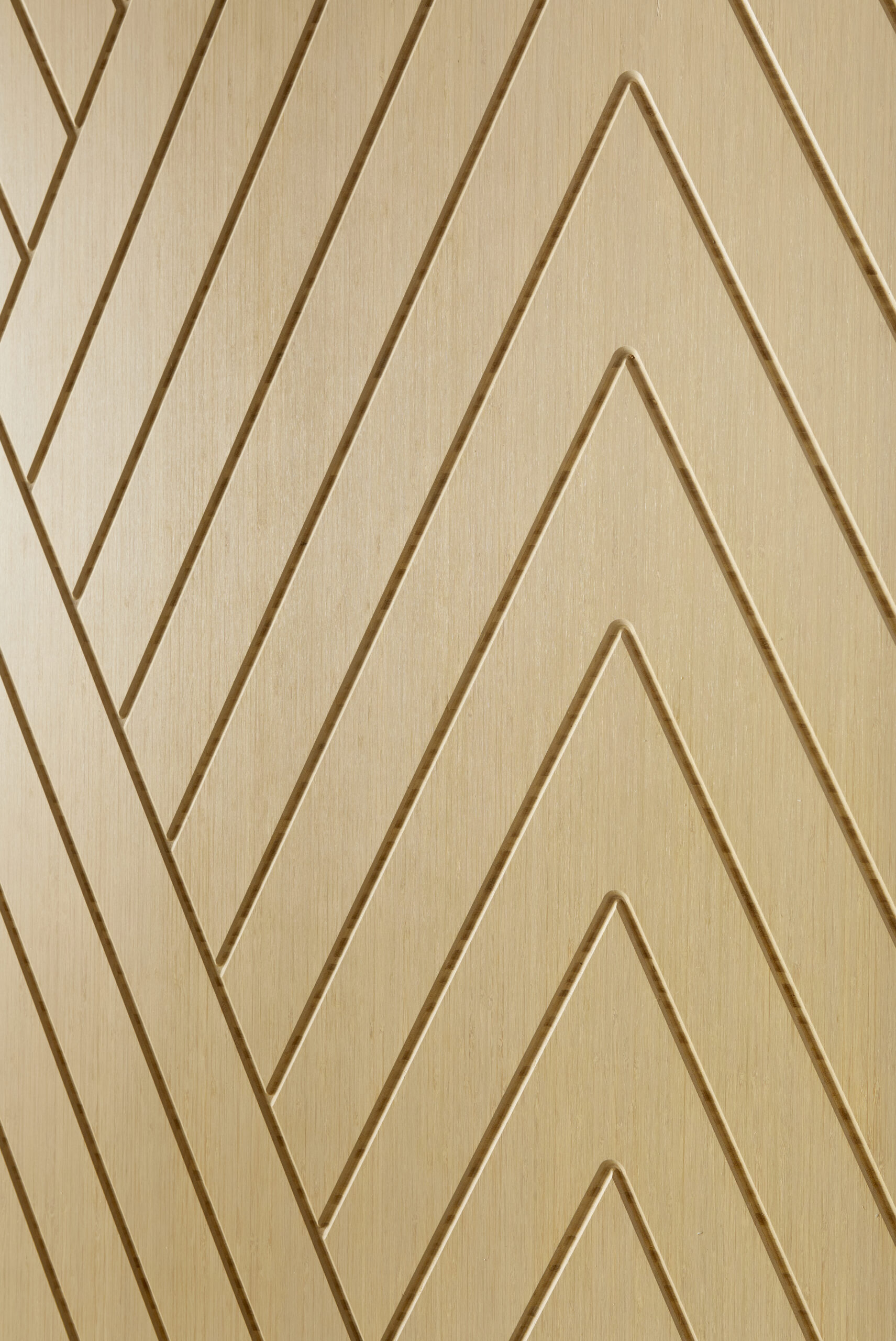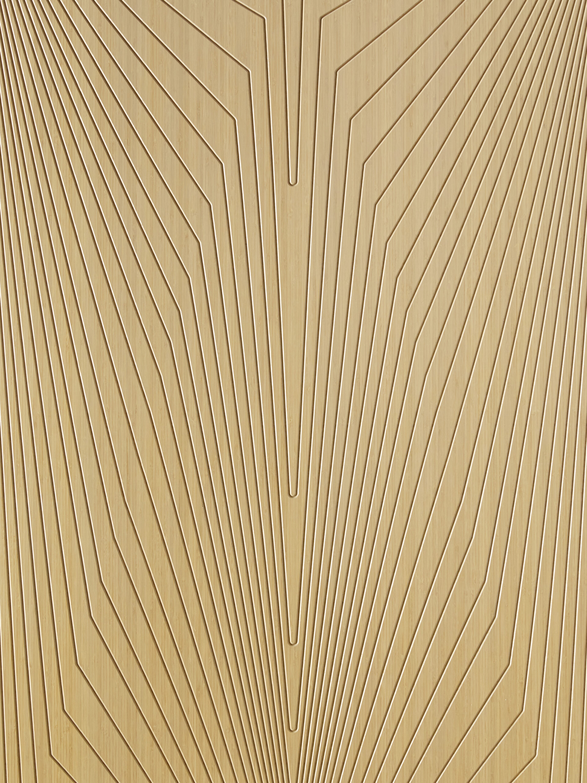 Inspired by the artistry of fashion designer and sculptural textile artist Kelsey Ann Kasom, Pleat&Weave explores the rhythm and repetition found in both fabric and bamboo. The interplay of pleated forms and woven textures creates a dynamic flow that transforms surfaces with depth and dimension. Plyboo’s signature RealCore® bamboo enhances this interplay, capturing light and shadow to create a striking visual effect—just as light dances across a finely woven textile. With its precise, sculptural details, Pleat&Weave brings a sense of movement and structure to any space.