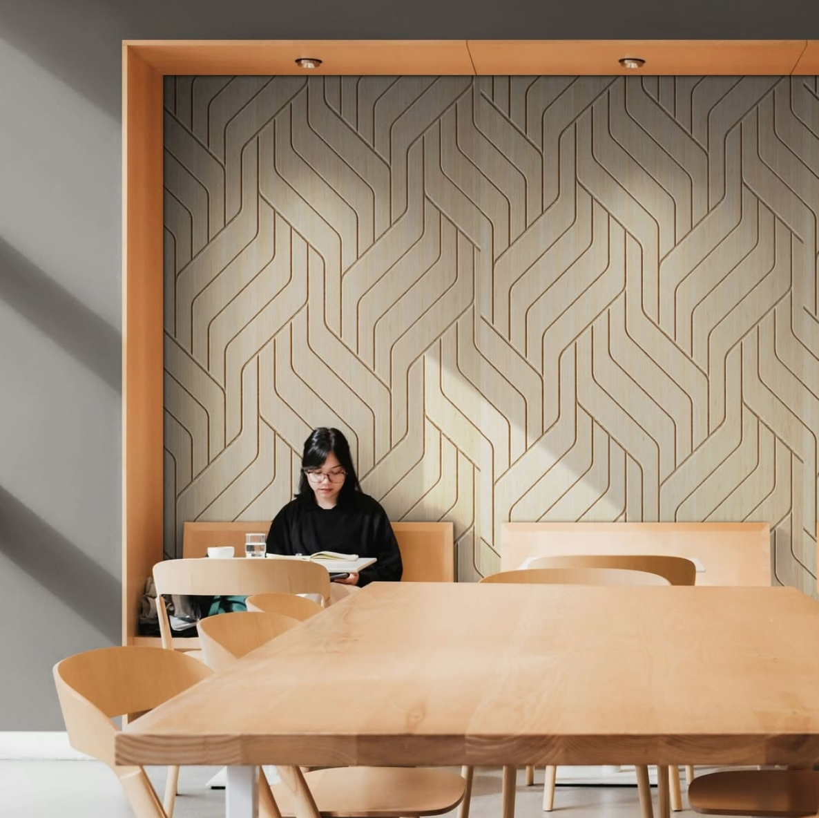 Designed for hospitality, public venues, and large open workspaces, Pleat&Weave offers an ideal solution for feature walls that demand both aesthetic and functional excellence. Plyboo’s proprietary RealCore® technology ensures consistent exposed edges, while the bi-directional construction enhances stability for long-term performance. Available in standard 4′ x 8′ sheets with a 3/4″ thickness, the panels come in both pre-finished and unfinished options, making them adaptable to a variety of project needs.